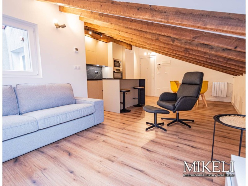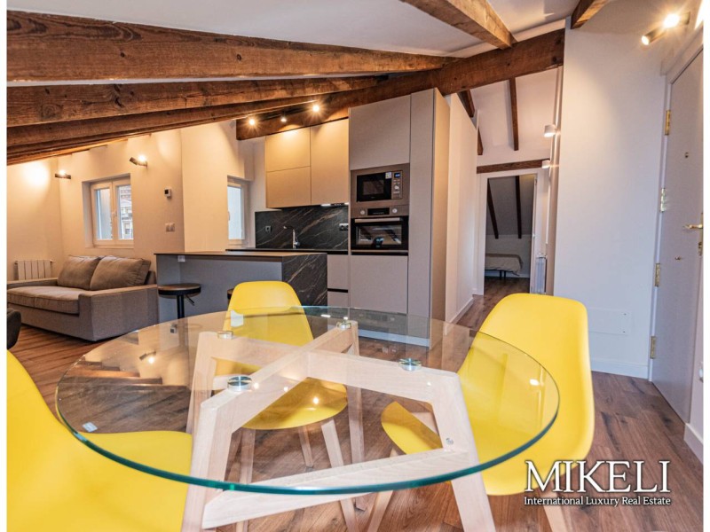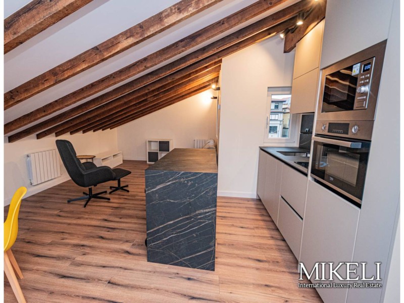 A escasos metros de la Plaza del Ayuntamiento, en la calle Rubio, nos encontramos con esta buhardilla tranquila, luminosa y moderna a estrenar. Ideal para 1 persona o pareja. Tiene una superficie de 83 metros cuadrados. Cuenta con salón, cocina, 2 habitaciones y un baño. Cuenta con materiales de calidad y totalmente nuevos, las ventanas con doble acristalamiento que dan sensación de mucha tranquilidad y silencio, así como en los electrodomésticos de primeras marcas que integran la cocina. También cuenta con calefacción de gas individual. La exclusividad de la ubicación, la calidad de los acabados y la comodidad de tener todos los servicios de primer nivel a un paso de su portal, hacen de este inmueble el hogar perfecto para un estilo urbano, pero tranquilo y cómodo. No mascotas, no fumadores. Exclusivas Inmobiliarias MIKELI, más inmuebles en la zona